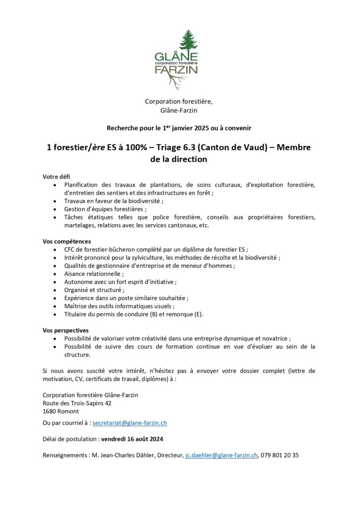Nous recrutons un·e forestier·ère ES à 100% Nous recrutons un·e forestier·ère ES à 100% Lire l’article »